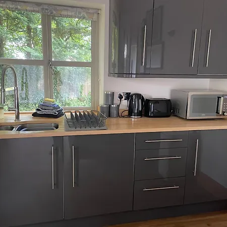 An equipped kitchen, provided at Maple Lodge, Wooded Retreat Atop The Mendips, includes an oven and a dishwasher. Bristol airport is situated 5 km from the Ubley property.